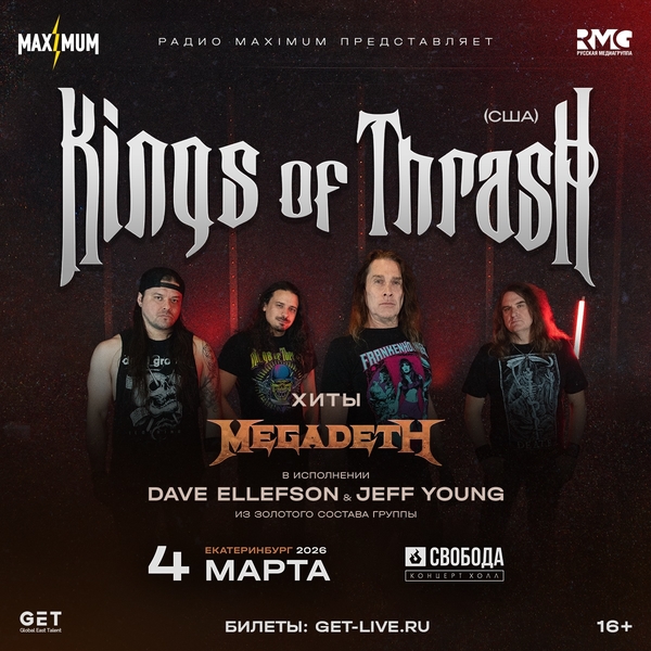 В марте 2026 года радио MAXIMUM готовит невероятный подарок всем поклонникам рока. Впервые за пять лет в Россию приедут MEGA-звезды американского трэш-метала: радиостанция представит концертный тур легендарных музыкантов-участников золотой эры культового коллектива MEGADETH Дэвида Эллефсона и Джеффа Янга, которые выйдут на сцену в составе группы Kings of Thrash.