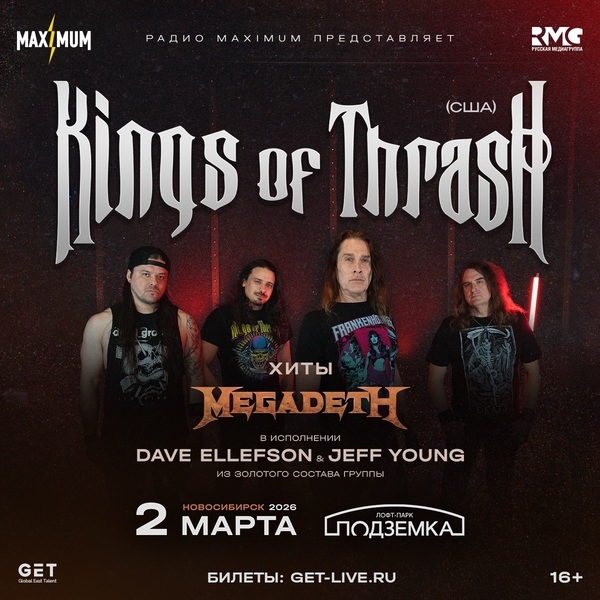 В марте 2026 года радио MAXIMUM готовит невероятный подарок всем поклонникам рока. Впервые за пять лет в Россию приедут MEGA-звезды американского трэш-метала: радиостанция представит концертный тур легендарных музыкантов-участников золотой эры культового коллектива MEGADETH Дэвида Эллефсона и Джеффа Янга, которые выйдут на сцену в составе группы Kings of Thrash.