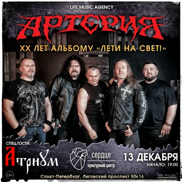 Друзья, ждем вас в Санкт-Петербурге, 13 декабря в клубе «Сердце», где мы с вами отметим 20-летие нашего альбома «Лети на свет!».
