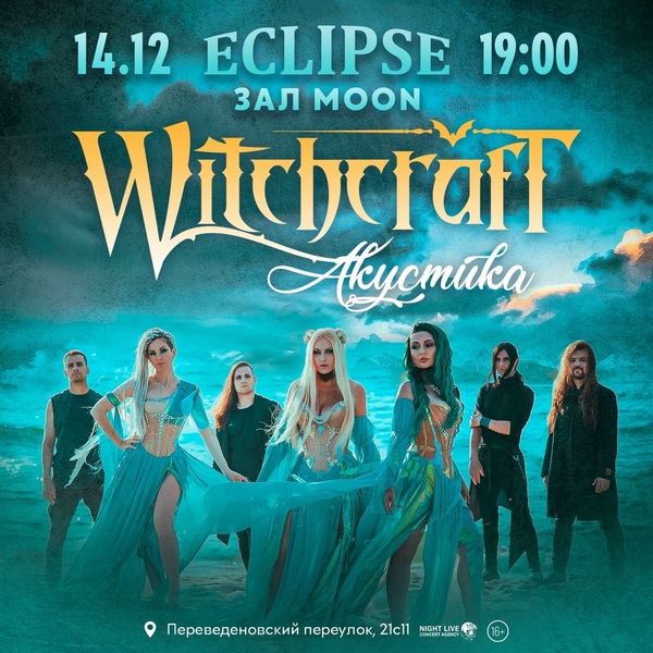 14 декабря Witchcraft - лицо столичного gothic/alternative metal с женским вокалом - вновь исполнит специальную программу, состоящую из акустических версий своих главных хитов и полюбившихся баллад! В конце уходящего года предлагаем вам проникнуться неповторимой атмосферой мрачной романтики, пропитанной флером колдовства, насладиться яркими образами Witchcraft и получить незабываемые эмоции от волшебной музыки! Возможны сюрпризы и специальные гости!