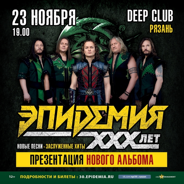 Три десятилетия эпических битв, огненных риффов и бессмертных хитов - легенда фэнтези-метала, группа «ЭПИДЕМИЯ», празднует своё 30-летие и анонсирует грандиозный тур в честь этого события!