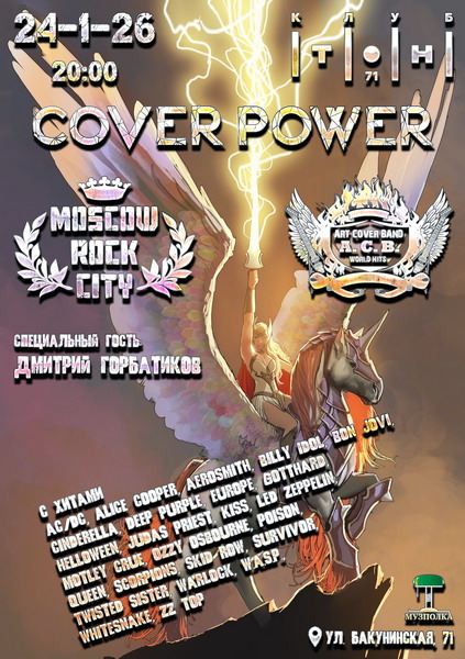 В субботу, 24 января завершаем самый праздничный месяц в году ещё одним праздником – вечеринкой COVER POWER, на которой выступят одни из лучших кавер-групп Москвы: