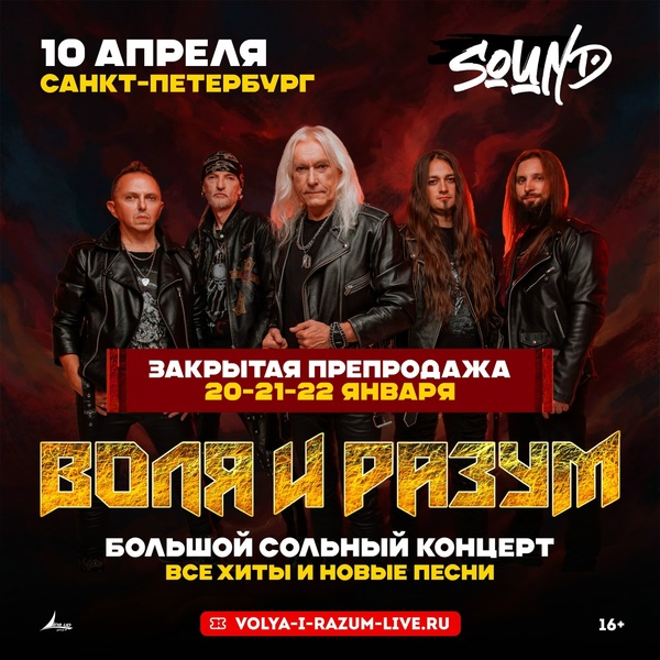 Не пропустите 10 апреля большой концерт группы «Воля и Разум» — мощный хэви-метал, выросший из классики жанра.