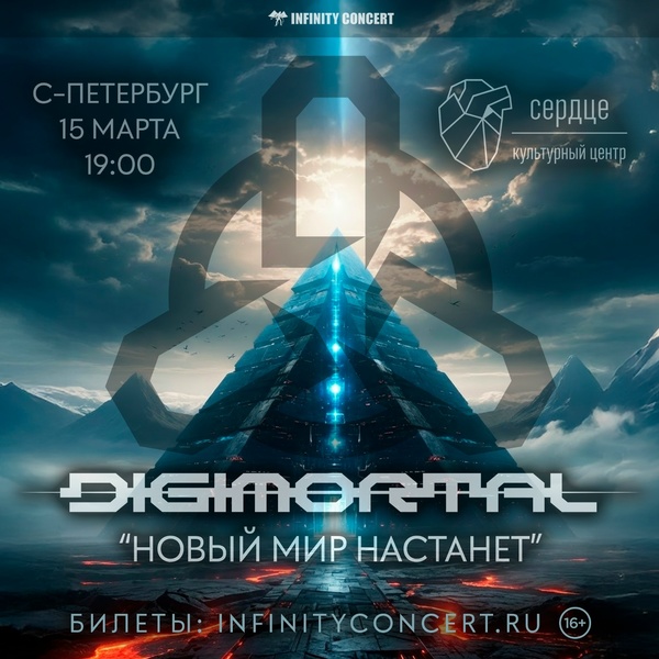 DIGIMORTAL – одна из узнаваемых и самобытных групп на российской тяжелой сцене. Бескомпромиссная энергия, философские тексты и концептуальная глубина – всё это неотъемлемые составляющие более чем 20-летнего творческого пути коллектива. Этой весной DIGIMORTAL готовят большие весенние концерты под знаковым названием «Новый мир настанет».