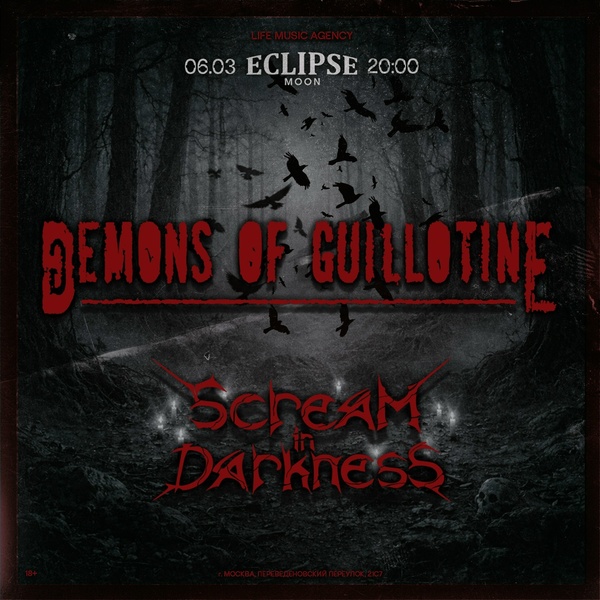 6 марта 2026, зима еще не отпустила, а пятничный вечер длиннее мыслей. Самое время посетить клуб "Eclipse", где Demons of Guillotine выступят с большой программой!