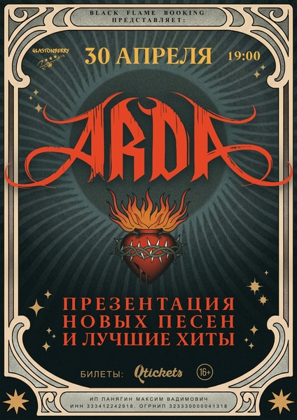 30 апреля 2026 года в клубе Glastonberry состоится большой сольный концерт команды ARDA!