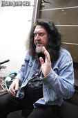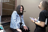 Если говорить о сегодняшнем концерте, то это концерт, посвященный 20-летию альбома “Лети на свет”, в котором принял участие небезызвестный Алексей Булгаков из группы Легион. Он знаковая фигура для Артерии, он сегодня обязательно должен быть, поэтому зачем мы его пригласили, обсуждать не приходится - и так понятно. Еще сегодня будет Денис Гуженко - у нас как-то покатило сотрудничество. Например, в июне мы вместе выступали, исполняя мои песни и песни Алика Грановского на фестивале “Metal Castle” в Ростове-на-Дону. До этого он выступал у нас на юбилейном концерте в прошлом году как специальный гость, исполнив песни - если мне не изменяет память - “Дорога без тебя” и “Ветер пустых дорог”, это его выбор. Так у нас сотрудничество и закрутилось - мы сделали новый релиз старой песни “Ветер пустых дорог” с голосом Дениса Гуженко. Гриша Стрелков, находящийся здесь, очень красивый и нарядный (“Спасибо” - отзывается Григорий), в свое время был непосредственным участником группы Артерия, с ним были записаны разные треки, в том числе известный “Край ветров”. Виктор Смольский принял участие в записи песни “Номер один”, записал там виртуозное соло. Нас связывает давнишнее знакомство, можно сказать, дружба со времен Арии, мы не теряемся и периодически видимся. В Минске я выступал с группой Rage - меня пригласили выступить в Москве, а я говорю: “Я не могу в Москве, я буду в этот момент в Минске”. Они говорят: “Отлично, выступишь в Минске!” Пришлось тащить с собой гитару; в Москве-то было бы проще выступить. Но было весело, интересно, и эта история продолжается - Виктор сегодня опять с нами. Мы ему очень признательны за то, что он согласился, это не только привлечет дополнительную публику, что важно с коммерческой точки зрения, но и порадует наших поклонников, которые, наверное, с ним не знакомы. В целом, выбор падает на людей, которые связаны какими-то общими делами, нам приятно друг друга видеть, приятно сотрудничать.