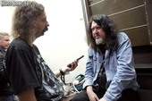 Архив интервьюГруппа Артерия, несмотря на солидный возраст, не устает радовать поклонников новостями. Возвращение вокалиста Андрея Козлова (Волкова), большие юбилейные концерты, грандиозный трибьют, собственные римейки полюбившихся публике композиций – и это еще далеко не полный список. Правда, в этом потоке инфоповодов не хватает, пожалуй, главного – анонса нового полноформатного альбома, которого мы ждем уже семь лет. Чтобы узнать поподробнее, как идут дела у заслуженного коллектива, мы решили обратиться за комментариями непосредственно к Сергею Терентьеву, тем более, что наш портал уже очень давно не беспокоил его расспросами. С Сергеем удалось поговорить в гримерке московского клуба “Glastonberry”, где группа отмечала 20-летие своего дебютного альбома “Лети на свет”, а поскольку общались мы буквально перед самым выходом Артерии на сцену, разговор проходил в окружении многочисленных специальных гостей мероприятия, одна из которых, поэтесса и певица София Карева, под конец также ответила на несколько вопросов.