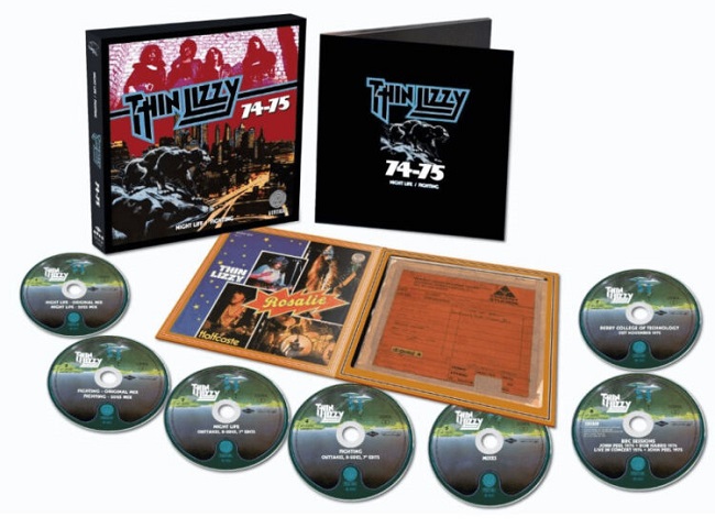 “74-75 – Night Life / Fighting”, новый суперподарочный бокс-сет ирландских хард-рокеров THIN LIZZY, увидит свет 21 ноября на лейбле Universal Music. Он будет состоять из шести CD и одного Blu-Ray.