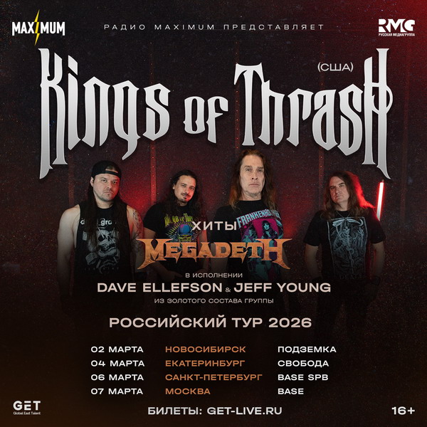 Проект KINGS OF THRASH, в котором играют экс-участники MEGADETH Дэвид Эллефсон (David Ellefson, бас) и Джефф Янг (Jeff Young, гитара), плюс вокалист и гитарист Чез Леон (Chaz Leon) и барабанщик Фред Эйкинг (Fred Aching, DEAD GROOVE, BULLETBOYS), посетит Россию с четырьмя концертами в марте 2026 года. Гастроли KINGS OF THRASH приурочены к двум юбилеям - 40-летию дебютного альбома MEGADETH "Killing Is My Business... And Business Is Good" (1985) и 30-летию "мультиплатинового альбома "Youthanasia" (1994). В программу также войдут песни с других альбомов MEGADETH, к которым в свое время приложили руку Эллефсон и Янг, а также авторский материал проекта.