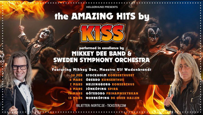 Барабанщик Микки Ди (Mikkey Dee), наиболее известный по участию в MOTÖRHEAD, SCORPIONS и KING DIAMOND, даст шесть концертов с рок-группой и Шведским симфоническим оркестром, на которых будут исполняться "потрясающие хиты KISS". Концерты состоятся в Швеции в конце февраля - начале марта 2026 года.