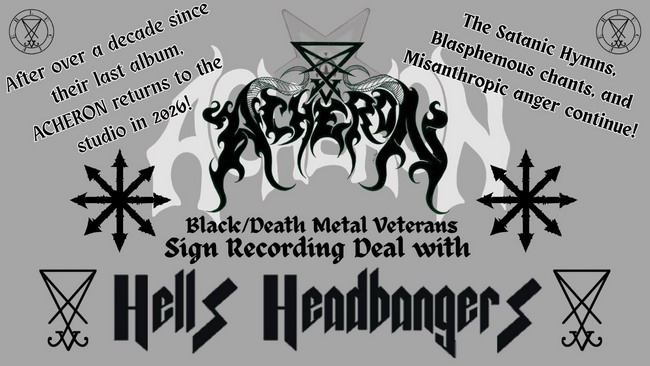 Американские дэт-блэк-металлисты ACHERON объявили о подписании контракта с лейблом Hell’s Headbangers. На нем выйдет следующий полноформатный альбом группы, который будет записан в 2026 году.