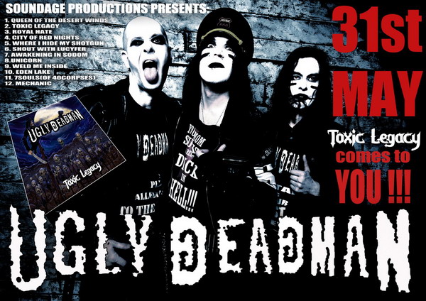 31 мая на лейбле SoundAge вышел дебютный альбом UGLY DEADMAN, сайд-проекта участников известной московской блэк-металлической группы DEMONS OF GUILLOTINE - Протеуса (гитара, бас), Зодиака (вокал) и Ниргуны (барабаны). Диск под названием "Toxic Legacy" - это, как гласит пресс-релиз, "семя настоящего, злого и первобытного рок-н-ролла, брошенное в благодатную почву, удобренное трэшем и блэк-металом".