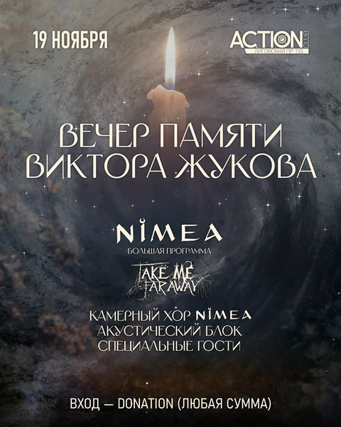 NIMEA исполнят на этом концерте большую программу, которую собирались играть с ANNA KIARA 12 октября, но так и не сыграли из-за внезапной кончины Виктора. Также в мероприятии примут участие камерный хор "Nimea", а TAKE ME FAR AWAY сыграют инструментальный сет.