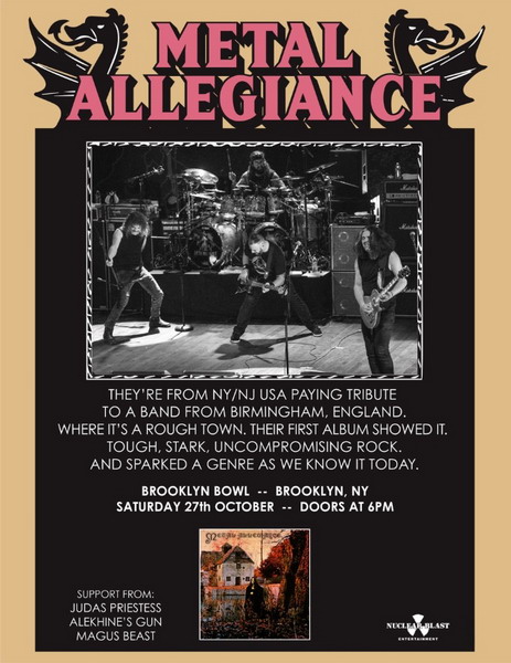 Проект METAL ALLEGIANCE, ключевыми участниками которого являются Дэвид Эллефсон (David Ellefson, MEGADETH), Алекс Сколник (Alex Skolnick, TESTAMENT), Майк Портной (Mike Portnoy, THE WINERY DOGS, ex-DREAM THEATER) и Майк Менги (Mark Menghi), полностью исполнит дебютный альбом BLACK SABBATH на концерте 27 октября в зале “Brooklyn Bowl” в Бруклине, штат Нью-Йорк.