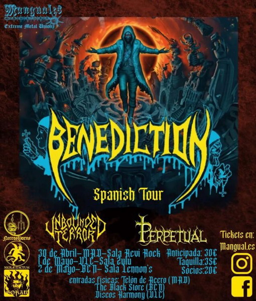 Испанские концерты BENEDICTION состоятся 30 апреля, 1 и 2 мая. На разогреве выступят INBOUND TERROR и PERPETUAL.