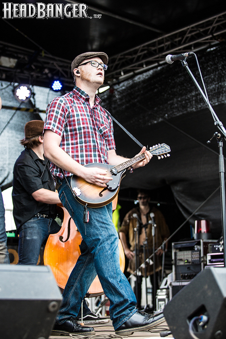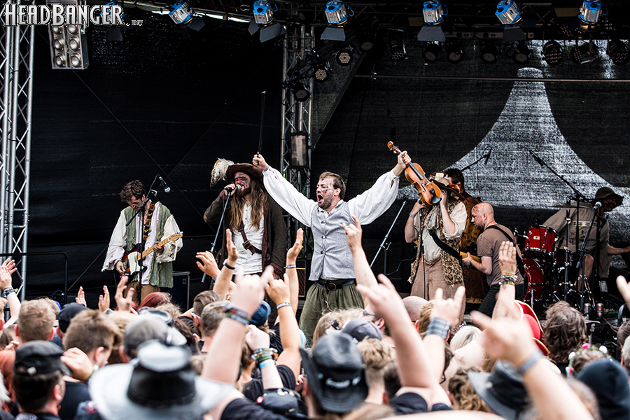 Пожалуй, больше о немузыкальной составляющей нашего пребывания на фесте мне сообщить нечего, поскольку ничего примечательно бытового за все три дня с нами, как мне кажется, не случилось — спасибо погоде, которая в этот раз была не так отвратительна, как в том году. Когда мы впервые вошли на территорию Вакена, почти можно было разглядеть солнце. Это, впрочем, было на тот момент единственной воодушевляющей для меня вещью, поскольку все по-настоящему интересные мне группы должны были выступать вечером. День же был распланирован под группы, о которых я либо едва слышала, либо не слышала вообще. The o'Reillys and the Paddyhats, ставшие в итоге первым, что увидела наша команда на Вакене, смущали меня уже одним своим названием, которое невозможно ни нормально записать, ни произнести, ни запомнить. К слову, группа эта совсем молодая (им где-то около 5 лет) и информации о них в сети закономерно мало. По собственному определению, они играют ирландский фолк-панк, и на поверку это оказалось так же интересно, как и в теории. Это на 100% фестивальная команда: там, на Вакене эти милые немецкие ребята устроили настоящий фурор, тогда как их немногочисленные песни, которые можно найти в ВК, звучат довольно стандартно. Лично для себя я бы не могла придумать лучшего начала фестиваля: старая добрая фолковая классика, исполненная со всем полагающимся жаром, моментально рождала желание прыгать и орать со всей мочи (что собравшиеся и делали с превеликим энтузиазмом).