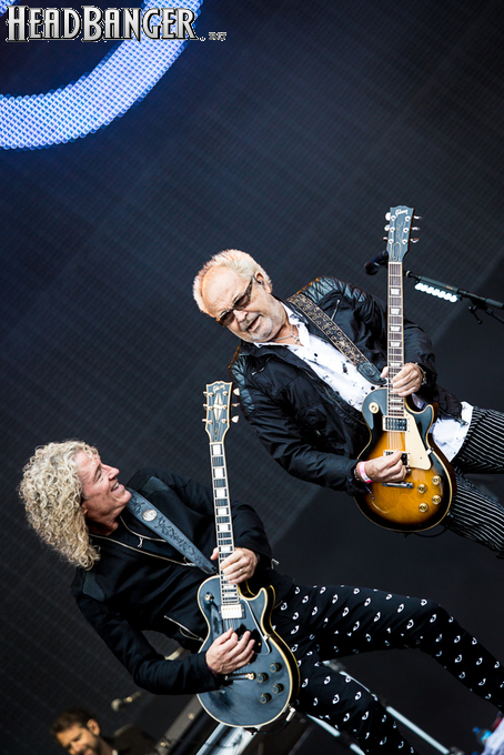Несмотря на то, что значительная часть партий Ковердейла по давней традиции дублируется инструменталистами, нареканий вокал маэстро, как и три года назад, когда я в прошлый раз видел Whitesnake, не вызывает. Джоэл Хокстра, которого опять-таки не все приняли после ухода Дага Олдрича, отлично справляется со своими партиями и живо вызывает в памяти легендарного Джона Сайкса. Харизматичный басист Майкл Девин, оказывается, в группе уже 6 лет. В 2013-м, помнится, он радовал не только толковой игрой и хорошими бэками, но и игрой на губной гармошке; на Вакене, к сожалению, мы остались без последнего - видимо, хронометраж не позволил.