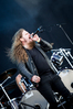Но на самом деле, ошиваться в районе шатров меня заставило желание посмотреть на Myrkur, заняв при этом козырную позицию. В адрес этого проекта мне довелось прочитать в интернетах кучу неожиданно злых комментариев, суть которых в основном сводилась к тому, что госпожа Амалия Бруун — та еще позерка (в доказательство приводились всевозможные поп-проекты, в которых она засветилась). Я на это могу сказать только одно — всем бы быть такими позерами. Её выступление показалось мне одним из самых убедительных из того, что я увидела на Вакене. Поскольку я была не очень в курсе, как она выступает вживую, двойная микрофонная стойка меня заинтриговала сразу. Во-первых, эстетика, черт возьми. Во-вторых, ей принципиально иметь два разных микрофона под чистый вокал и под гроул? Как оказалось, пресловутая микрофонная стойка выполняла гораздо более важную функцию: отдельные микрофоны предназначались для двух разных людей. Когда бы Амалии ни приходилось в очередной раз утробно зарычать, её лицо менялось до неузнаваемости — могу поклясться, выглядела она, как сущий демон (к слову, у нас даже есть пара фотографий, на которых запечатлены все её метаморфозы из миловидной светловолосой и ясноглазой нимфы в исчадие ада). Но главное - это был настоящий блэк. Да, там могли быть клавиши, да, там был чистый женский вокал, и все же по давящей атмосферности и мрачности Myrkur могут смело тягаться с самыми матерыми представителями жанра. Это как раз тот случай, когда определенные вольности и немного мягкости не только не вредят, а, напротив, делают заезженный канон вновь жизнеспособным. И кавер на Bathory, закрывавший выступление, только поддержал эту идею преемственности, а убедительная связь с Bathory, на мой взгляд, вообще редкость и дорогого стоит.
