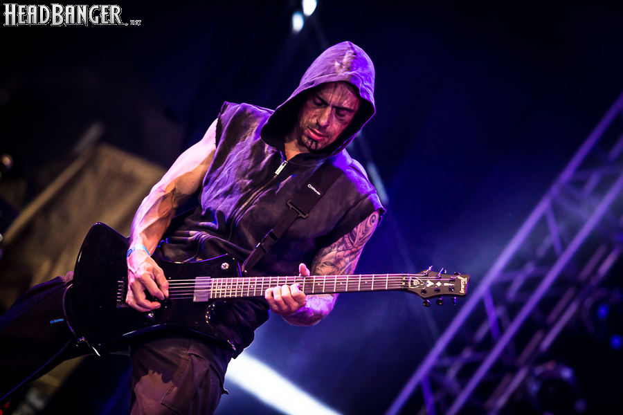 Пришли мы вовремя - DevilDriver как раз играли чрезвычайно удачный кавер на “Sail” за авторством AWOLNATION. Впрочем, я уже жалею, что мы не послушали, например “Daybreak” с нового альбома “Trust No One”, да и вообще сет «Драйверов» целиком – мощью подачи Дэз Фафара сотоварищи кладут тех же Lamb Of God на обе лопатки. С чувством юмора у брутального вида дядек тоже порядок – когда на сцене возникли какие-то технические неполадки, инструменталисты не растерялись и заиграли известный рифф из “I’m Broken” Pantera.