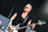 Тот факт, что последний фестивальный день также подходил к концу, понятное дело, радости не добавлял. Тем не менее, мы попытались развеяться под «вице-хэдлайнеров» - Arch Enemy. «Арчи» подошли к делу серьезно – декорации для их шоу монтировали на “Black Stage” еще днём. С первой же “Yesterday Is Dead And Gone” стало понятно, что одними декорациями дело не обойдется – Алиссе Уайт-Глуз, несмотря на поздний час, удалось практически немедленно добиться мощнейшей отдачи от публики, которая бодро скандировала всё, что предлагала «Мальвина» (выбор, впрочем, ограничивался «хэй-хэй» с разным выражением). Следующим номером прозвучал один из самых, на мой вкус, удачных боевиков с альбома “War Eternal” - собственно, заглавный трек. Здесь вторым соло отметился Джефф Лумис, недавнее приобретение Arch Enemy, замечательный гитарист, известный как толковой сольной работой, так и участием в уважаемой группе Nevermore, которая после его ухода впала в летаргию. Следует, впрочем, понимать, что Arch Enemy – это в первую очередь Майкл Эммот, и потом уже все остальные, поэтому та творческая свобода, которая была у Лумиса в Nevermore, вряд ли возможна в Arch Enemy.