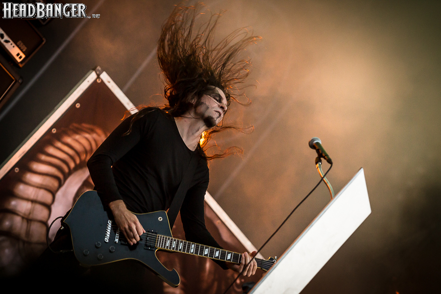 Дело кончилось компромиссом. Сначала мы послушали несколько песен Symphony X, которых нашей фотографине хватило для того, чтобы запечатлеть музыкантов, из которых наибольшее внимание к себе привлекал Рассел Аллен. И дело тут не только в этом безусловно сильном вокале, но и в бело-синей маске, которую мистер Аллен на себя нацепил. Вероятно, появление маски на Расселе связано вовсе не злоупотреблениями алкоголем накануне, а тем, что маска присутствует на обложке нового альбома “Underworld”, равно как и на ранних работах группы. В остальном же выступление прогрессивно настроенных американцев ничем особым нам не запомнилось, и посему мы переместились к “Headbangers Stage”, где как раз начала свое выступление хрупкая Амалия Бруун в сопровождении крепких мужчин угрюмого вида - и все это под вывеской Myrkur. Myrkur, в отличие от Symphony X, нам запомнились, а вот чем именно - читайте в разделе моей коллеги.