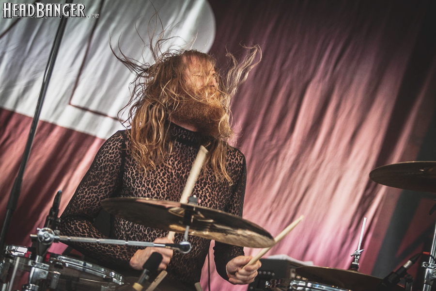 Группа Kadavar играет стоунер-рок, и это заметно: все участники трио бородаты, носят винтажную, чтоб не сказать, странную одежду (одна леопёрд…пардон, леопардовая кофта барабанщика чего стоит), играют на потёртых инструментах – в общем, вы поняли. Выглядит всё это прикольно, но что касается музыки, то Kadavar, к сожалению, как не произвели на меня впечатления в записи, так не произвели его и живьем. Это при моей-то любви к стоунеру. Так что большую часть их выступления я послушал из пресс-зоны, тем более, что стоило The Exploited уйти со сцены, как снова зарядил дождь.