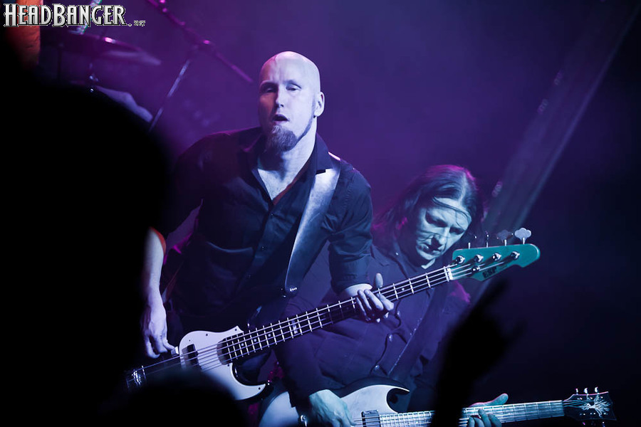 К моменту выхода на сцену финнов танцпол заполнился чуть больше, чем на две трети. Не знаю, как кому, а лично мне это удивительно. Предыдущий приезд Swallow The Sun в Москву случился восемь лет назад, и вроде бы времени для того, чтобы соскучиться, прошло немало. Плюс к тому, группа выпустила с тех пор три полноформатника, последний из которых «трёхтомный» (!!) и крайне интересный. Собственно ему в большей степени и посвящён нынешний тур.