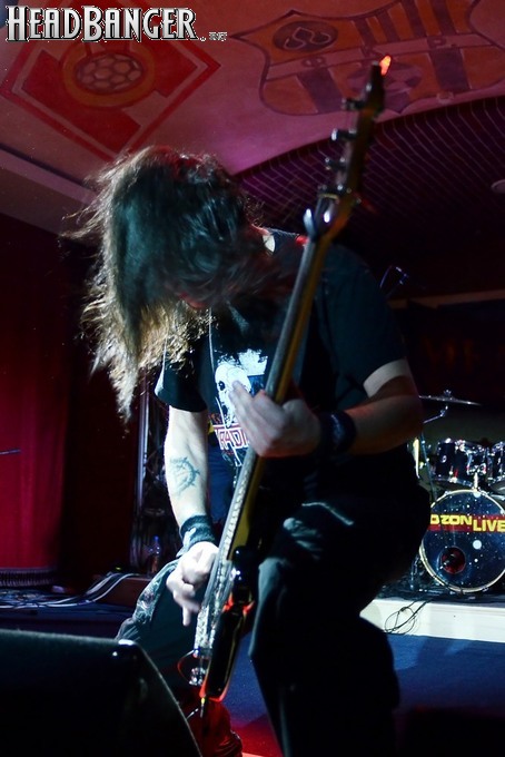 На сцену Memorain вышли около половины девятого вечера. Как и предполагалось, количество публики оставляло желать лучшего – по переднему краю робко стояло около 20 человек, и еще человек 10 рассредоточилось по боковым столикам. Музыкантов это ничуть не смутило - подключив аппаратуру, они бодро отыграли два первых трека “Demon's Hunt” и “Guardian Knight” с альбома “Duality Of Man”. И во здесь нужно отдать фанатам должное – несмотря на свою немногочисленность, публика бодро и рьяно отрывалась под тяжелые риффы, благо чистота и плотность звука позволяли это делать в удовольствие. В зал переместились и зрители из-за столиков. И сама атмосфера концерта стала какой-то позитивной, приятной.