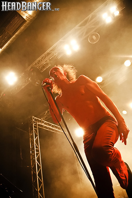 Программа вечера стартовала со знакового хита “Kannibale”, и толпа моментально задергалась в пульсирующем индустриальном танце. Конечно, пытливому взгляду и уху понятно, что музыка в большинстве своем состояла из заранее запрограммированных паттернов, но при этом нельзя было не отметить отменный артистический шарм обоих участников дуэта. В течение всего сета пестрая братва зажигала настолько усердно, что в то, что Бруно именно здесь при тебе только лишь с помощью одного синтезатора генерирует сложнейшие многослойные электронные аранжировки, верилось чисто по инерции. Ну а фирменный вокал Штефана и подавно ни с чем не спутаешь. Кстати говоря, в этот раз группа обошлась без дополнительных сессионных музыкантов на сцене, однако, как я уже успел намекнуть выше, на факте естественного восприятия музыки это никак не отразилось. Многочисленные акробатические па и заигрывания с толпой вокалиста лишь окончательно убедили сочувствующих в том, что последствия не так давно перенесенного им инсульта позади. Разве что обращал на себя внимание тот факт, что большинство текстов были зачитаны Акерманом с тетради на пюпитре. Его же коллега Крамм с самого начала шоу вовсю пользовался тем, что его клавишная установка снабжена колесиками. Казалось еще одно неловкое движение, и здоровенная туша вместе с агрегатом рухнет в «змеиную» яму на фотографов. Но, к счастью, обошлось без травм.