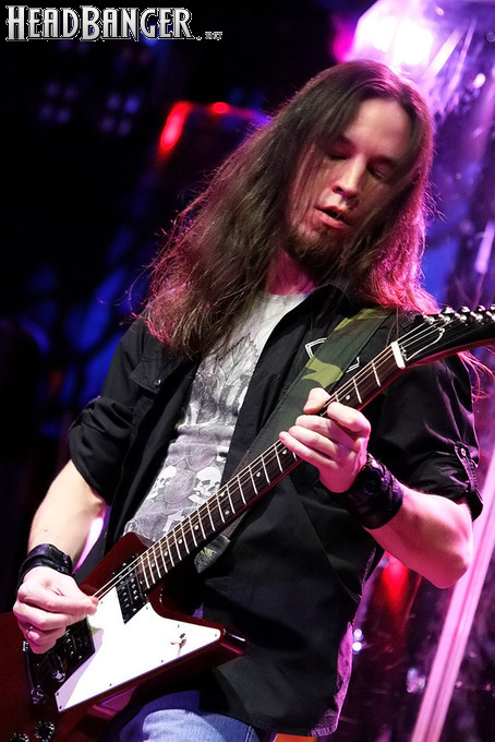 В этот вечер Андем играли программу по заявкам поклонников, и сет-лист полностью состоял из вещей, которые получили наибольшее число голосов на официальных ресурсах группы. И, по-моему, получилась прекрасная программа, в которой нашлось место для песен с каждого из трех студийных альбомов, так что готик-поп-металлический уклон позднего периода творчества Андема уравновешивался боевиками с «Маятника жизни» (2008) и «Дочери лунного света» (2009). Но для меня наибольшей интригой была даже не программа, а функции двух вокалисток с весьма схожими голосами, необходимость наличия которых в записи (если судить по недавнему EP «Вечность») понятна не всегда. Вживую, однако, оказалось, что данное решение – не просто подстраховка на случай, если кто-то из девушек выступать не может, а отменять концерт нельзя. Да, большинство партий они поют вместе, но благодаря этому звучание голоса приобретает больший объем, и там, где Тарья Турунен пускает второй вокал в записи (так называемый дабл-трекинг), у Андема все звучит живьем. Это всегда выигрышнее, да и визуально смотрится очень эффектно. Тем более, что обе фронт-леди, Кристина Федорищенко и Юлиана Савченко, держатся на сцене вполне уверенно, и каждая обладает индивидуальностью.