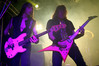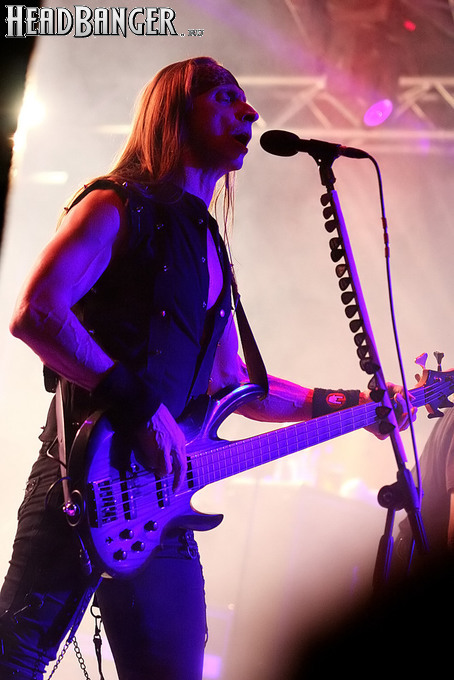 В назначенный час Gamma Ray по традиции бодро открыли концерт знаковой нетленкой “Heaven Can Wait”. Лучезарной энергией была пронизана каждая минута пребывания Кая Хансена и его подопечных на сцене, и решение расширить состав казалось совсем уж опрометчивым. Однако второй микрофон включился уже перед третьей песней сета, коей оказался задорный боевик “Fight”. Думаю, мои личные ожидания совпадали с догадками большинства пришедших – я предполагал, что Фрэнк и Кай будут делить вокальные партии примерно 50 на 50, давая периодически отдохнуть друг другу. Вместо этого Бек провел на сцене практически весь остаток вечера, а подавляющая часть треков была исполнена сразу двумя фронтменами. Причем, к разочарованию многих, речь не шла о дуэтном исполнении – большинство партий вокалисты пели одновременно в два голоса. Такое решение оказалось, мягко говоря, спорным – в не отличающейся идеальными звуковыми кондициями «Вольте» Кай и Фрэнк буквально перекрикивали друг друга, и огромная доля ярких и хитовых вещей была таким образом загублена.