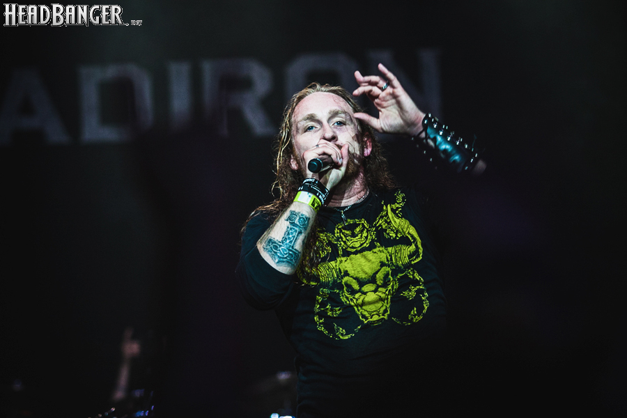 Мои спутники, не знакомые с творчеством Deadiron, оказались в менее выигрышном положении, так что не уверен, что их хватило бы надолго, если бы не бешеная активность Алекса, который фактически спас выступление своей команды. Фронтмену довольно быстро стало тесно на сцене, и он выбрался на ринг, расположенный аккурат между “W.E.T. Stage” и “Headbanger Stage”, откуда постарался вовлечь в действо как можно большее число спасающихся от дождя металхэдов. Но и этого ему показалось мало, поэтому перед “Revelation” Алекс пообещал зрителям, что, если они устроят сёркл-пит, то он присоединится к ним. Народ жаждал зрелищ и побежал, Алекс же сдержал слово, исполнив песню из центра сёркл-пита.