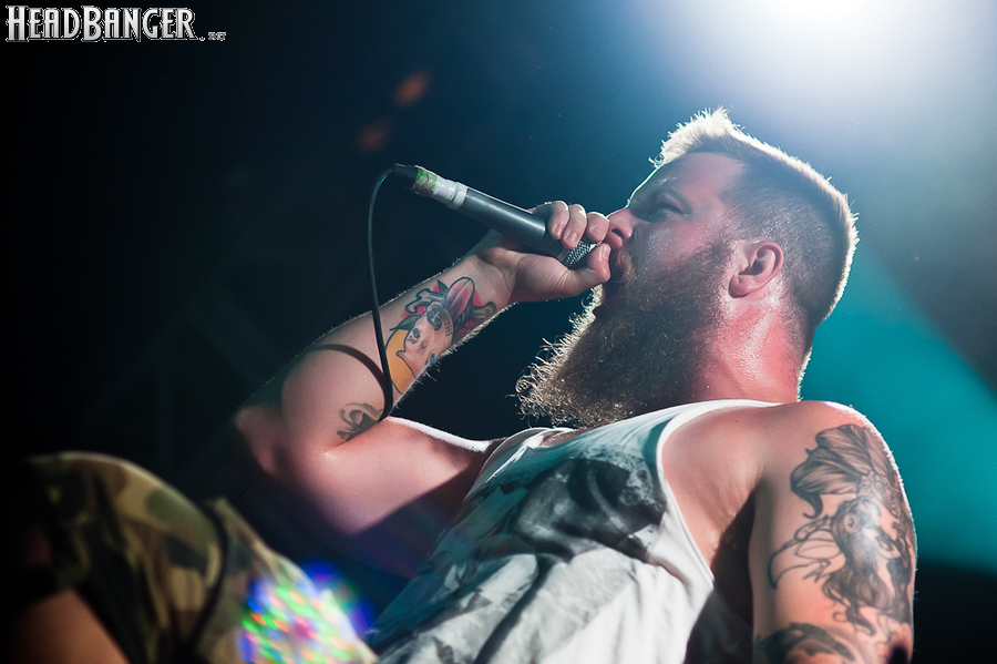 После выступлений разогрева хэдлайнеры не заставили себя долго ждать и тут же обрушили на уши достопочтенной публики один из своих главных хитов – “Bloodmeat”. Перформанс этого во всех смыслах сумасшедшего номера, к сожалению, был немного смазан довольно посредственным звуком, но, к чести ответственного за пультом, буквально на третьей композиции все встало на свои места, и в дальнейшем ничто не мешало насладиться выступлением канадцев в полной мере. Что же касается сет-листа в целом, то это тот самый случай, когда выделить что-то в особенности просто невозможно. Канадский бородатый ураган за 70 минут пронесся по всем своим четырем альбомам в равных пропорциях, отыграв самые любимые народом композиции, и просто не оставил желать лучшего (хотя после концерта мной и были услышаны сожаления о том, что за бортом осталась “C'est La Vie”, но, право, идеальным в таком случае вариантом было бы исполнение вообще всего репертуара группы целиком). Ответного энтузиазма от публики ждать долго не пришлось. Уже начиная с третьей песни, эпичной “Sex Tapes”, в толпе начался массовый крауд-серфинг, который продолжался до самого конца концерта, а исполнение общепризнанных нетленок вроде “No Stars Over Bethlehem” и “Sequoia Throne” каждый раз порождало в зале массовое сумасшествие.