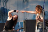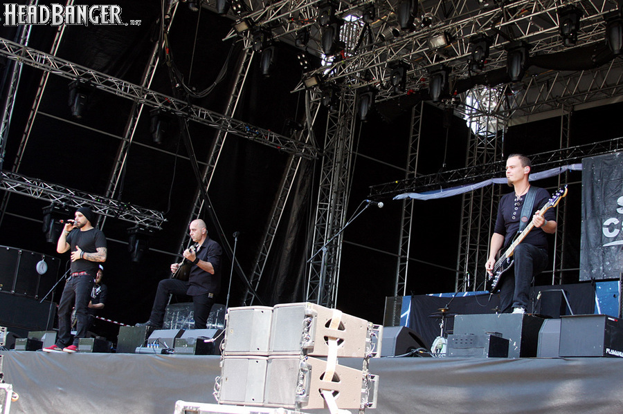 Дневные программы на “Masters Of Rock” составляются по логике, понятной, похоже, только организаторам фестиваля. Так, сразу после Tri State Corner, то есть, в половину второго дня, на сцену вышла местная группа Harlej, собравшая чуть ли не столько же народу, сколько Dymytry накануне. А следом за ними – немецкие лав-металлисты Lacrimas Profundere, на которых осталась лишь горстка самых преданных фанатов. Этой осенью данный коллектив впервые приедет в Россию, но сыграет только в Санкт-Петербурге, обойдя Москву вниманием, так что мы решили не упускать возможность посмотреть на него в Чехии. Что ж, не могу сказать, что Москва так уж много потеряет. Конечно, в ситуации, когда лав-метала на его родине, то есть, в Финляндии, почти не осталось, группа, грамотно копирующая The 69 Eyes в студии и HIM на концертах, дорогого стоит. Но переняв у северных соседей стиль, саунд и имидж, немцы не смогли воспользоваться тем же рецептом сочинения хитов. Сыгранная ими в Чехии программа – исключительно ровная, «крепко сбитая», но напрочь лишенная каких-либо запоминающихся моментов. По крайней мере, их не было в первые 30 минут, которые мы посмотрели; дальше решено было поискать себе укрытие в тени, так как солнце в этот день припекало не на шутку.