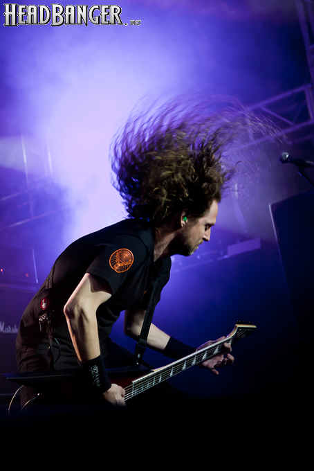 Exister оказались чудесно острой и сочной закуской, и публика ждала продолжения банкета с уже не на шутку разыгравшимся аппетитом (замечу, кстати, что всё действо началось строго по расписанию). Однако, смею предположить, удовольствие от основного блюда для некоторых было подпорчено отсутствием одного крайне важного компонента — Гэри Холта. Да, состав Exodus за время существования претерпел массу перестановок, однако именно Холт оставался невосприимчивым к этим катаклизмам. По сути, для некоторых он один и есть Exodus.