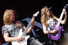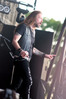 Многие собравшиеся у “Festival Stage” зрители наверняка обратили внимание, что Слэш был одет в футболку Airbourne. Не знаю, стоит ли считать это совпадением, или австралийцы сами попросили маэстро о рекламе такого рода, но именно Airbourne стояли в программе фестиваля следующими. Положа руку на сердце, в дополнительной рекламе они не нуждались – перед “Rock Stage” аккумулировалась плотная толпа, значительная часть которой была одета в такие же майки. И братья О’Кифф первым же своим треком доказали всем интересующимся, что ждали их не зря. По музыке в Airbourne нет ничего особенного – это очередные последователи AC/DC, которых и без них за последние 40 лет было немало. Но их энергетический напор – это нечто если не уникальное, то очень редкое. Фронтмен Джоэл О'Кифф не столько бегал, сколько метался по сцене, не переставая при этом наяривать соло на гитаре, его коллеги поддавали жару, а материал предоставлял благодатную почву для всякого рода импровизаций и общения со зрителями. Общение, правда, у австралийцев своеобразное и выражается в основном в раскидывании в толпу открытых (!) пивных банок, часть из которых Джоэл предварительно разбивал (!) о свою голову. Впрочем, этого ему показалось мало, и в середине сета он, не снимая гитары, полез на осветительную мачту, служащую также опорой для крепления верхней части сцены и порталов. Взобравшись на самый верх, безумный австралиец сыграл там соло, после чего отправился в обратный путь – опять-таки, с болтающейся на ремне гитарой. Пару раз во время его восхождения у меня возникали опасения, что мы, возможно, присутствуем на последнем выступлении Airbourne, так как если бы Джоэл, к тому моменту уже выпивший «пару пива» и никакой страховкой не пользующийся, «спланировал» с такой высоты, тяжелых травм было бы не избежать. К счастью, все обошлось, и счастливо вернувшийся на твердую землю фронтмен продолжил «зажигать» с той же интенсивностью. Хоть я и был заранее знаком с творчеством Airbourne, их выступление стало для меня главным сюрпризом второго дня фестиваля. Причем, как оказалось впоследствии, такой уровень энергетики для них не исключение, а правило – на состоявшемся через две недели после “Sweden Rock” концерте австралийцев в Москве все было практически так же угарно, разве что по стропилам никто не лазил (ввиду отсутствия в клубе «Вольта» таковых).