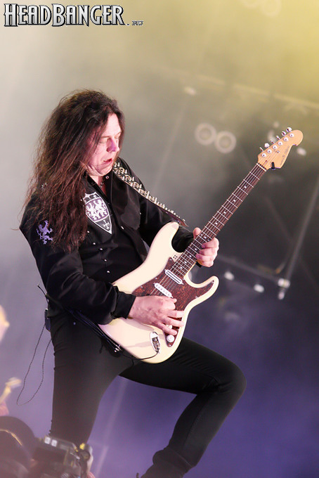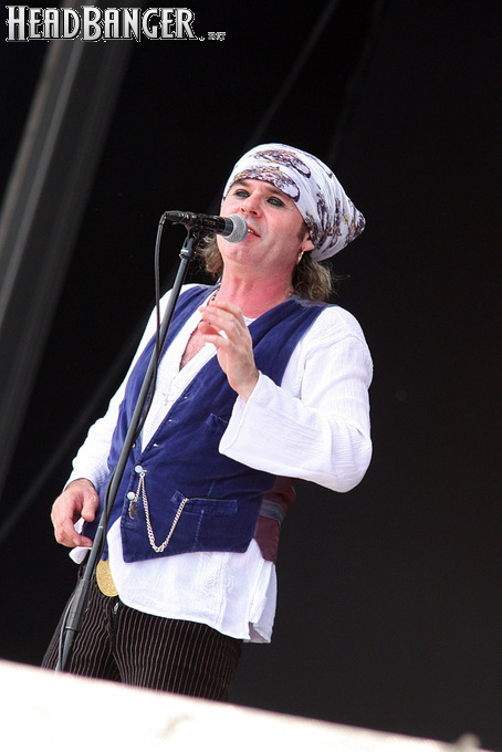 Тем временем на другом конце фестивальной зоны начала работу колоссальных размеров главная сцена, и чести открыть ее удостоится Спайк, которого мы накануне уже видели в составе The Quireboys. Вообще, «двойной удар» - это, видимо, фишка нынешнего фестиваля: позднее в этот же день отыграли акустический сет Evergrey, которые тоже уже отметились в среду, а на следующий день сразу два своих проекта – Alestorm и Gloryhammer – представил шотландец Кристофер Боуз. Что же касается Спайка, то на “Festival Stage” он выступал с проектом Spike's Free House, о котором я ничего не знал, но решил заценить, находясь под впечатлением от первоклассного сета The Quireboys накануне. Оказалось, что Free House – это что-то типа британской хард-рок-супергруппы, в которую входят клавишник из Magnum, гитарист из Thunder и барабанщик из Free. Первоначально в ней числился еще один экс-участник Free, басист Энди Фрейзер, но в марте этого года он скончался, и его функции взял на себя коллега Спайка по The Quireboys Ник Мэйлинг.