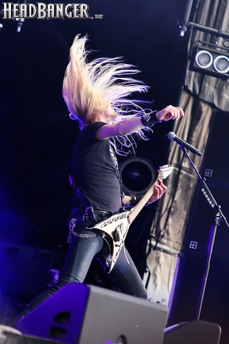В это трудно поверить, но следующее посещенное нами выступление оказалось ЕЩЕ убойнее. Правда, сюрпризом оно не стало – финны Battle Beast выступали в Москве всего несколько месяцев назад, и их концерт оказался для меня лучшим в первой половине 2015 года. Эта группа – настоящая квинтэссенция современного тру-хэви-метала: у них мощнейший и безупречно хитовый материал, который они подают живьем с таким напором, что просто невозможно устоять. На “Sweden Rock” ситуация повторилась – оказавшись на сцене, финны приступили к бомбардировке публики одним хитом за другим, и той ничего не оставалось, как начать отрываться практически так же активно, как это делали музыканты. Примечательно, что выступавшим на той же сцене год назад Powerwolf потребовалось немало усилий, чтобы раскачать флегматичную скандинавскую аудиторию; Battle Beast же это удалось буквально за пару песен. Слаженная работа всех инструменталистов, отличный звук и, конечно, невероятная мощь голоса Нооры Лоухимо – все составляющие успеха на местах, и я бы без зазрения совести предсказывал группе большое будущее, если бы не одно «но». Весь материал, который она исполняет, написан не нынешними участниками Battle Beast, а ее бывшим гитаристом Антоном Кабаненом, уволенным в начале этого года с большим скандалом. Что будет делать группа на следующих альбомах, не имея в составе автора таких блестящих хитов как “Far Far Away” и “Let It Roar”, я не знаю. Впрочем, это будет потом, а сейчас по итогам фестиваля я могу сказать, что это было лучшее выступление второго дня и одно из лучших за все мероприятие.