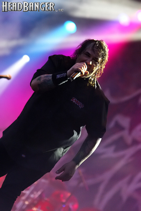 После такого пауэр-металлического триумфа переключиться на жесткий трэш Exodus оказалось довольно-таки тяжело. Во-первых, в составе группы не обнаружилось ее лидера Гэри Холта, который во многом и олицетворяет Exodus, а во вторых, Стив Суза, считающийся каноническим фронтменом калифорнийских ветеранов, никакими особенными фронтменскими качествами не блеснул. Упитанной фигурой и хаотическим поведением на сцене он очень напомнил мне Герре из Tankard, разве что головой о порталы не бился. Но мало-помалу стало очевидно, что сет-лист Exodus тоже состоит из хитов чуть более чем полностью, и если термин “Bay Area thrash” что-то для вас значит, оставаться равнодушным при звуках таких гимнов как “Blacklist”, “A Lesson In Violence” или “Bonded By Blood” можно только очень непродолжительный период времени. Жаль, что ко времени нашего появления у “Sweden Stage” в программе Exodus уже закончились все вещи с альбома “Blood In, Blood Out”, их первой работы после возвращения Сузы, но и классика в виде, например, “The Toxic Walts” или “Strike Of The Beast” доставила мне немало удовольствия. Очень жаль, что не удалось посмотреть Exodus в более существенном объеме, но это та цена, которую приходится платить за насыщенность программы многосценных фестивалей – как бы ты ни старался, что-то интересное пропустишь обязательно. Даже параллельно с «самыми-самыми» хэдлайнерами здесь всегда играет кто-то еще, причем далеко не последний в метал-иерархии. В частности, «альтернативой» выступлению Def Leppard для экстремально настроенных посетителей послужили Bloodbath – дэт-металлический проект участников шведской группы Katatonia, вокалистом в котором с недавних пор выступает сам Ник Холмс из Paradise Lost. Увы, посмотреть их хотя бы краем глаза у нас не было ни единого шанса.