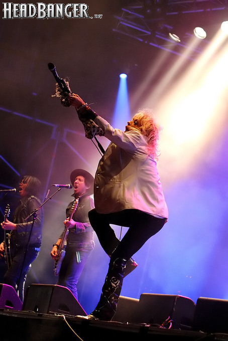 Что же играет столь интересная компания? Об этом вам намекает слово “Free” в ее названии. И действительно, весь сет Спайка и его коллег состоял из каверов Free, а также почему-то Фрэнки Миллера, шотландского автора-исполнителя, чьи песни записывали Рэй Чарльз, Робин Трауэр, Джонни Кэш и другие. Я, честно говоря, плохо знаю и не особо понимаю такую музыку, поэтому скучно мне стало довольно быстро. Тем более что Спайк, накануне буквально лучившийся энергией, предоставил музыке возможность говорить громче, чем картинке, и по большей части просто стоял на месте. Исполнители такого рода неизменно собирают на “Sweden Rock” массу зрителей, но мы остались в некотором недоумении и предпочли убежать на только что начавшуюся автограф-сессию Battle Beast – к сожалению, единственную за весь фестиваль, на которую у нас нашлось время.