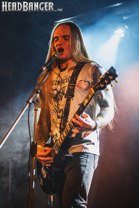 Ко времени выхода следующей группы зал уже стал потихоньку заполняться, люди прибывали все активнее и активнее, и с появлением Nefas Terra возле сцены уже столпилось достойное количество слушателей. Блэк-металлисты из Подольска поприветствовали публику и принялись за свой сет. Темп песен у них был на порядок ниже, чем у предшественников, но с плохо настроенным звуком на это можно было не обращать внимания, все инструменты все равно сливались в шум, а то, что лирика у группы русскоязычная, я вообще понял только к концу их выступления. Тем не менее, на сцене Nefas Terra смотрелись куда увереннее Norrbrand, а оценивать группу нужно не только по качеству материала, но и по его подаче.