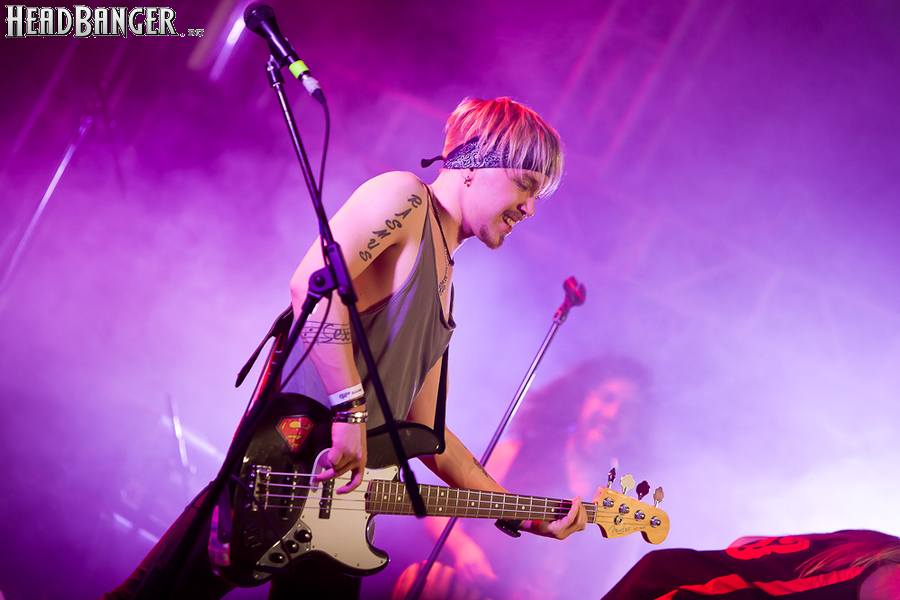 Reckless Love очень живо ведут себя на сцене. Фронтмен постоянно бегает, прыгает, забирается на мониторы и принимает картинные позы, на которые просто невозможно не “клюнуть”, если ты юная (или не очень) девушка. Да и поёт Олли вполне себе замечательно, периодически довольно удачно забираясь в верхний регистр. Басист Ялле и гитарист Пепе, находящиеся по обе стороны от фронтмена, постоянно одаривали собравшихся яркими белоснежными улыбками и обстреливали задорными риффами и соло-партиями. Ну и ударник Хейкки тоже сиял и постоянно демонстрировал чудеса обращения с барабанными палочками. В общем, скучать не приходилось никому.
