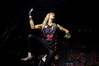 Так или иначе, в сете нашлось место как песням, посвященным любви к танцам (очевидная “Dance”, к примеру), так и к хэви-металу (“I Love Heavy Metal”), но больше было песен просто о любви (“Sex”, “Born To Break Your Heart”, “Beautiful Bomb” и многие другие). И практически к каждой вещи Олли произносил заготовленную “подводку”. Например, перед хитом “Hot” прозвучал примерно такой монолог: “Несмотря на то, что лето еще только прячется за углом, у нас с вами в зале уже жарче, чем в аду. Об этом и поётся в следующей песне”. И это была истинная правда – ближе к концу концерта в зале стало безумно жарко от постоянных танцев и трясения хаером, к которым располагала музыка и бешеная энергия, передаваемая её посредством. Кроме того, нельзя не отметить атмосферу всеобщей радости и любви, которая материализовывалась буквально на глазах. Ну а когда Олли снял с себя последние предметы верхней одежды и остался с голым торсом, большинство девушек не смогли сдержать восторга, оглушительно завизжав и ахнув одновременно, а их спутникам, если таковые имелись, пришлось крепко задуматься о своей физической форме. Тоже польза.