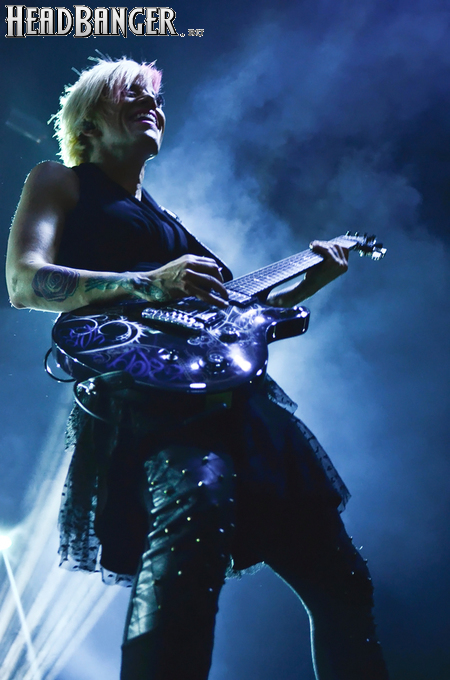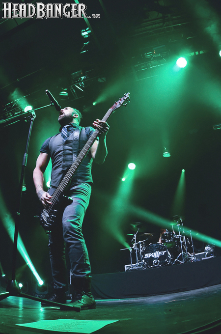 Но разогрев разогревом, а что в зале началось с появлением самих виновников торжества, словами не передать. Сквозь крики и визги счастливых фанатов с трудом можно было различить начальные мотивы “Whispers in the Dark”, той самой песни, с которой, по моему опыту, большинство и познакомилось с группой Skillet в первый раз. Ею было открыто выступление.