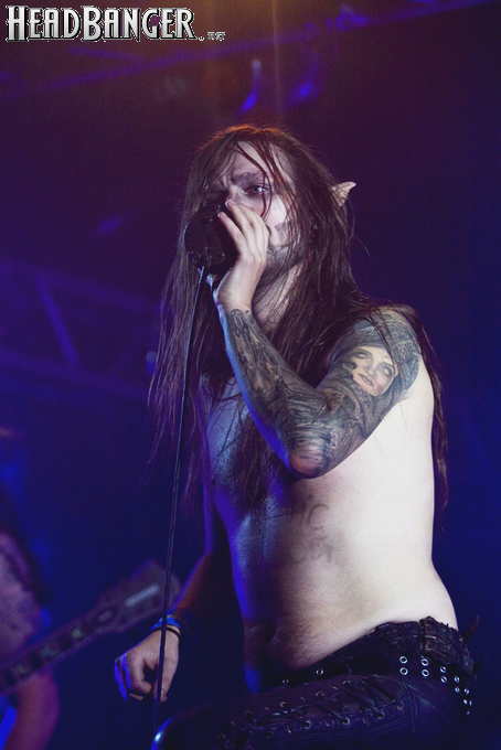 После небольшой паузы на сцену вышли долгожданные Finntroll. Публика, и так готовая завестись с пол-оборота, буквально взорвалась. Неудивительно, ведь под музыку, которую играют финны, невозможно спокойно стоять - хочется прыгать, скакать, влетать в слэм (который, к слову сказать, был в полном смысле слова массовый), крутить сёркл-пит, в общем, угорать, что все активно и делали. Кто вдруг не знает - играют Finntroll хумппа-фолк-метал. Хумппа - жанр финской танцевальной музыки, потому такая реакция публики неудивительна.
