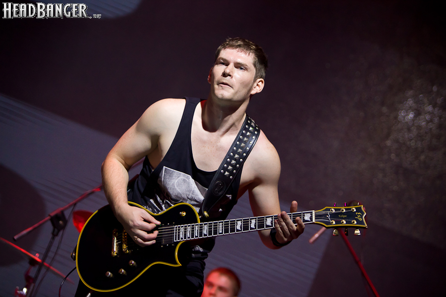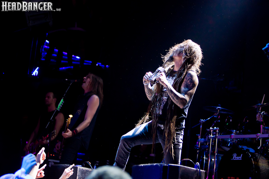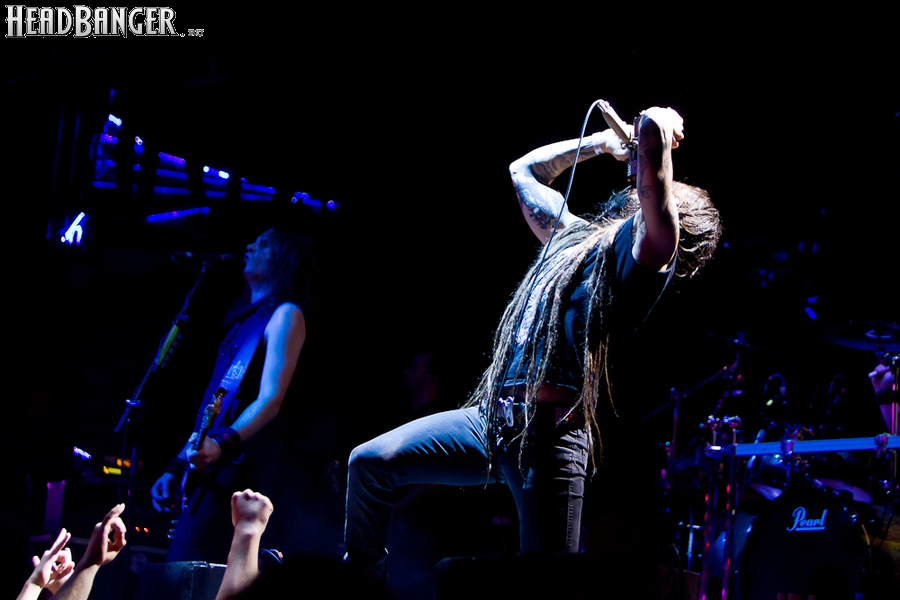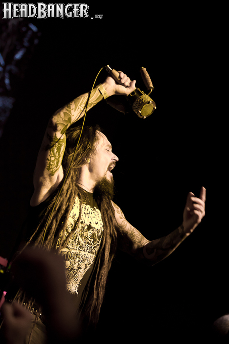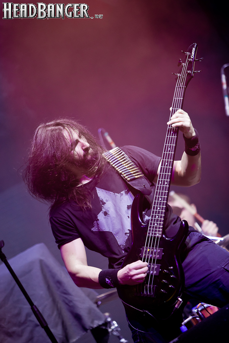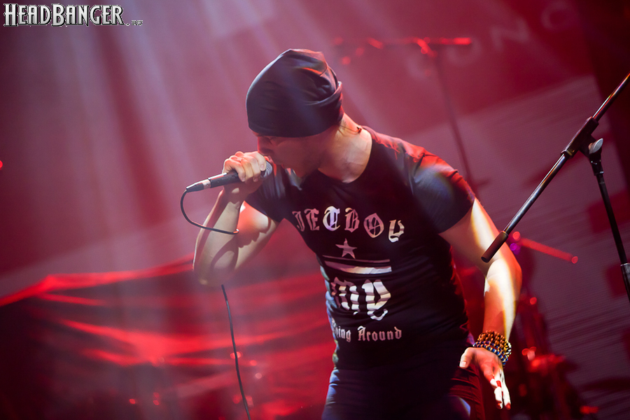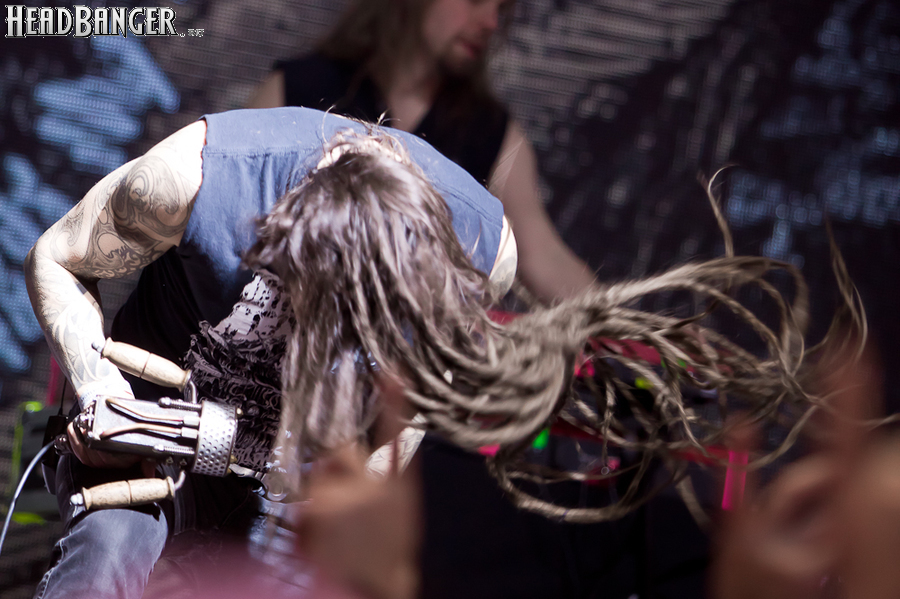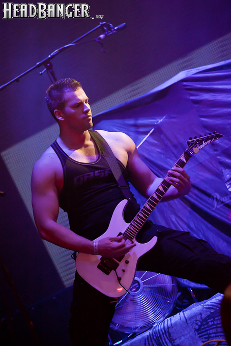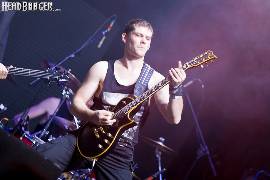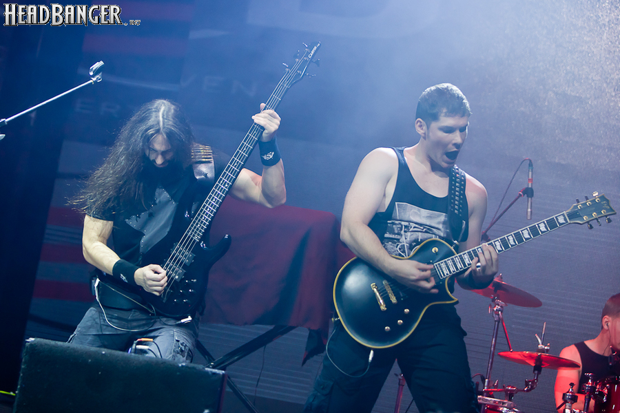 Но вот я попал в зал, и, честно говоря, разогрев, как это и бывает в большинстве случаев, порадовал не слишком сильно. К сожалению, все слова про то, что «энергетику, царящую на концертах Solerrain, невозможно передать словами» оказались бравадой, не имеющей отношения к реальности. Музыка группы, насколько я могу судить по студийным записям, представляет собой современную интерпретацию мелодик-дэта финской школы, но вживую я успел услышать всего около трёх песен, одна из которых была кавером на известный хит “I’ve Got The Power” немецкой группы Snap, и, скажу честно, этой самой энергии в оригинале гораздо больше. Оставшиеся две песни были подпорчены довольно нечетким и размазанным звуком, и очень жаль, потому как работа гитаристов и клавишника, насколько я слышал на записях, в принципе, заслуживает внимания. Откланявшись в 20:30 и оставив зал громогласно скандировать “A-mor-phis!”, Solerrain покинули сцену. Кажется, разогрев приняли вполне неплохо, но заметное оживление в зале всё же говорило о том, что большинство зрителей рады окончанию их сета.