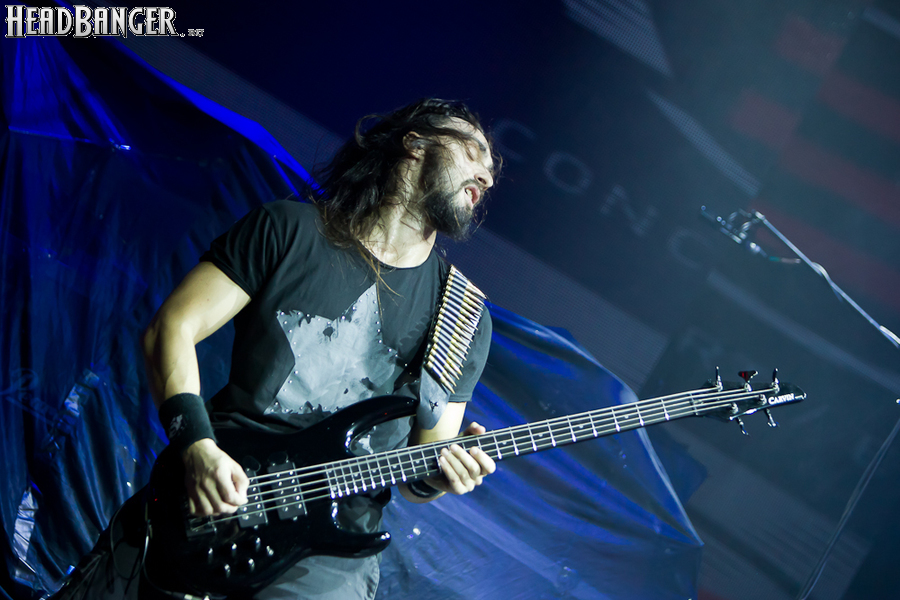 А я во время перерыва отправился изучать зал клуба. Обнаружился интересный факт – пол здесь многоуровневый. Это довольно удобно для не очень высоких людей, потому как всегда можно встать на ступень выше и тем самым несколько улучшить вид на сцену. Ну а сцена, соответственно, расположена достаточно высоко, поэтому музыкантов видно очень хорошо практически из любой партера. Также в зале слева и справа наличествуют второй и третий этажи, отведённые под вип-зоны. А еще присутствует экран, на котором во время выступления Amorphis различные изображения сменяли друг друга после каждой песни, и всё было бы здорово, если бы не одно “но”. Экран не сплошной, а состоит из трёх частей. Две находятся примерно на одном уровне, а вот та, что посередине – глубже двух других. Из-за этого все проецируемые изображения смотрелись кривовато, особенно если встать сбоку от сцены. Но в целом, клуб производит хорошее впечатление и выглядит довольно многообещающе. Плюс дорога до него практически от любой ближней станции метро выглядит очень красиво, о чем я уже упоминал выше.