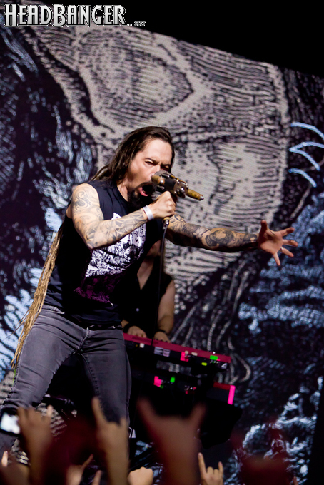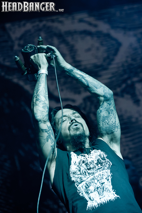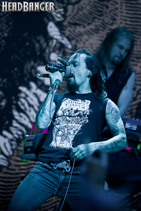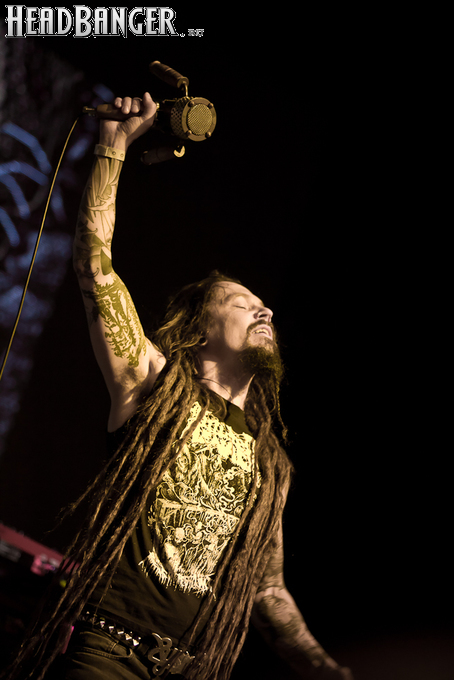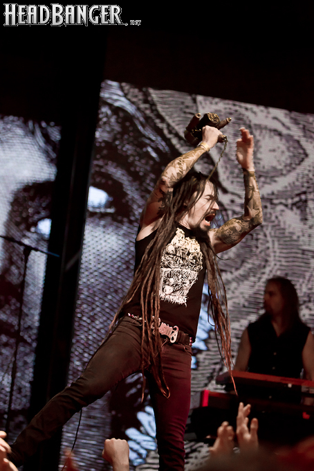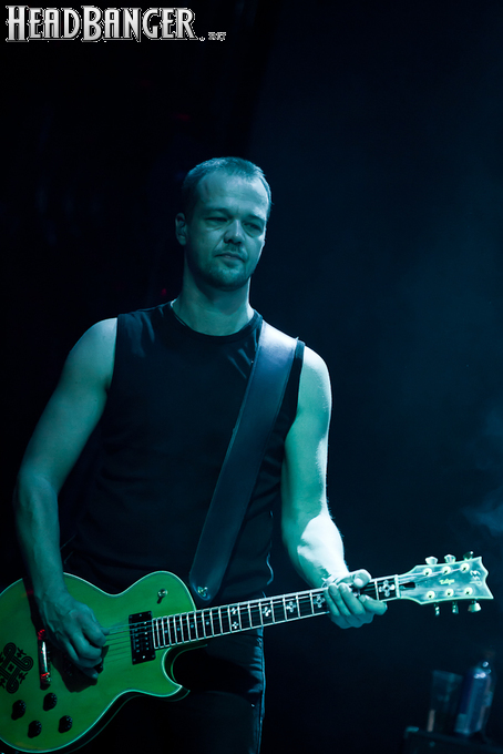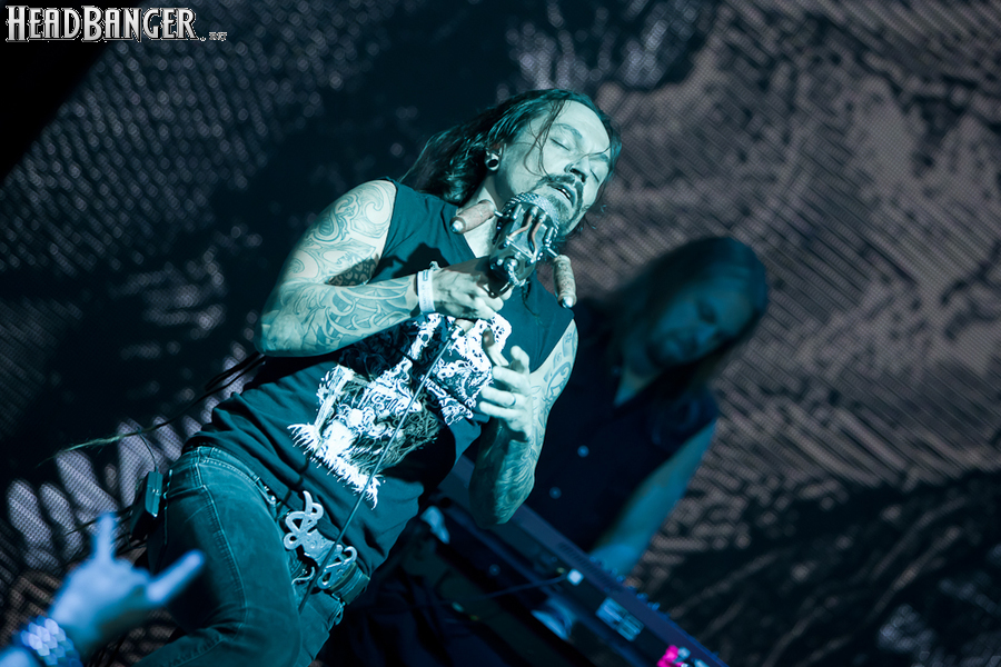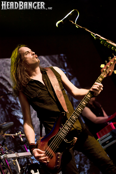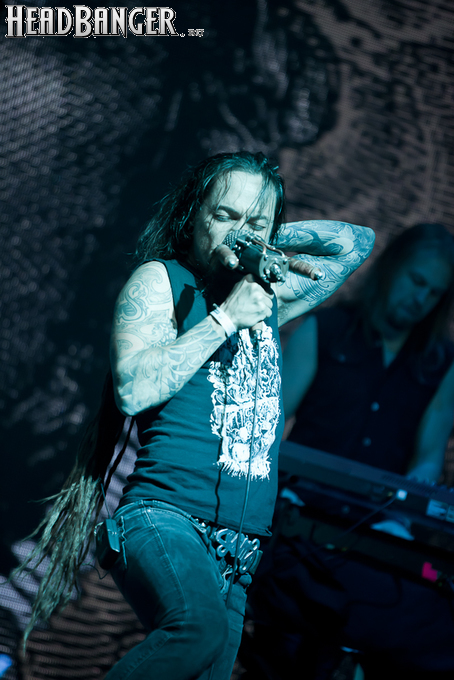 Буйство вокала продолжилось в “Weaving The Incantation”, одной из любимейших мной вещей с довольно-таки спорного альбома “Silent Waters”. По части экспрессии это был один из самых сильных номеров вечера. Затем курс был взят на еще один легендарный и, пожалуй, самый мой любимый альбом «старого» Amorphis – “Elegy”, откуда подряд были сыграны забойная “On Rich And Poor”, которой не было в предыдущих сет-листах этого тура, что стало для меня крайне приятным сюрпризом; а потом и вовсе отдающую чем-то из 70-х “Weeper On A Shore”, которую группа не исполняла вживую чуть ли не с 1997 года. Далее последовали брутальная “Majestic Beast”, драйвовая, но при этом лиричная “Mermaid”, лав-металлическая “Silent Waters” и – куда же без неё – очередная песня, без которой, кажется, не обходится ни одно выступление группы – “My Kantele”. Начавшись как акустическая версия, она продолжилась пространным и впечатляющим джемом всех участников группы и, в конце концов, вылилась во всем знакомую и любимую качающую вещь с гроулом, фолковым припевом и замечательной гитарно-клавишной работой, ставшей практически кульминацией вечера.