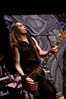 Но вот в 9 часов с копейками погас свет, и заиграло интро, которое представляло собой акустическую интерпретацию песни “Shades Of Gray” с последнего на данный момент альбома Amorphis “Circle”. Поочередно появились улыбающиеся музыканты, одним только своим явлением безумно обрадовав всех собравшихся, которых, кстати, было очень приличное количество. Однако свободного места благодаря удачной планировке в зале вполне хватало. И в продолжение темы интро, оглушительно грянула вещь с последнего же альбома, но, к моему расстройству, не “Shades Of Gray”, а “Hopeless Days” - как мне кажется, чуть менее подходящая в качестве открывающей песни. Тем не менее, песня эта тоже отличная и поэтому зал ожил – взметнулись в воздух руки, люди подпевали и высоко прыгали, крутили “мельницы” волосами, в общем, чувствовали себя замечательно. Звук, однако, в самом начале выступления радовал не слишком сильно. Вокал и соло-гитару было слышно очень нечётко, однако где-то к “Silver Bride” этот недостаток был устранён.